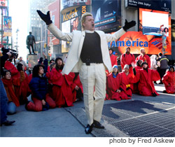 My interest piqued in this unique brand of street theater activism, I decided to check out the movie What Would Jesus Buy? Throughout this new documentary (produced by Morgan Spurlock of Supersize Me), Rev. Billy and his Stop Shopping choir assume the persona of street preachers as they rally against the gospel of consumerism. According to Rev. Billy (real name Bill Talen), "If we can change Christmas, then we can change the rest of the year."