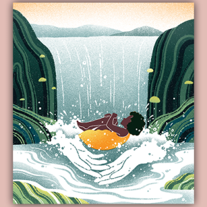 I WAS SWIMMING with friends in a creek when our host led us to a waterfall where a blanket of water dumped into a deep pool. The only way to get to the small cavern behind the fall was to swim below the churning surface. My friends dove under and popped up happily behind the curtain of water. I tried, but the water pounded my back and pushed me back to where I started. The next time, I approached it sideways and reached out my hand for a friend to pull me through.