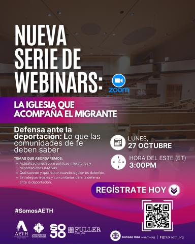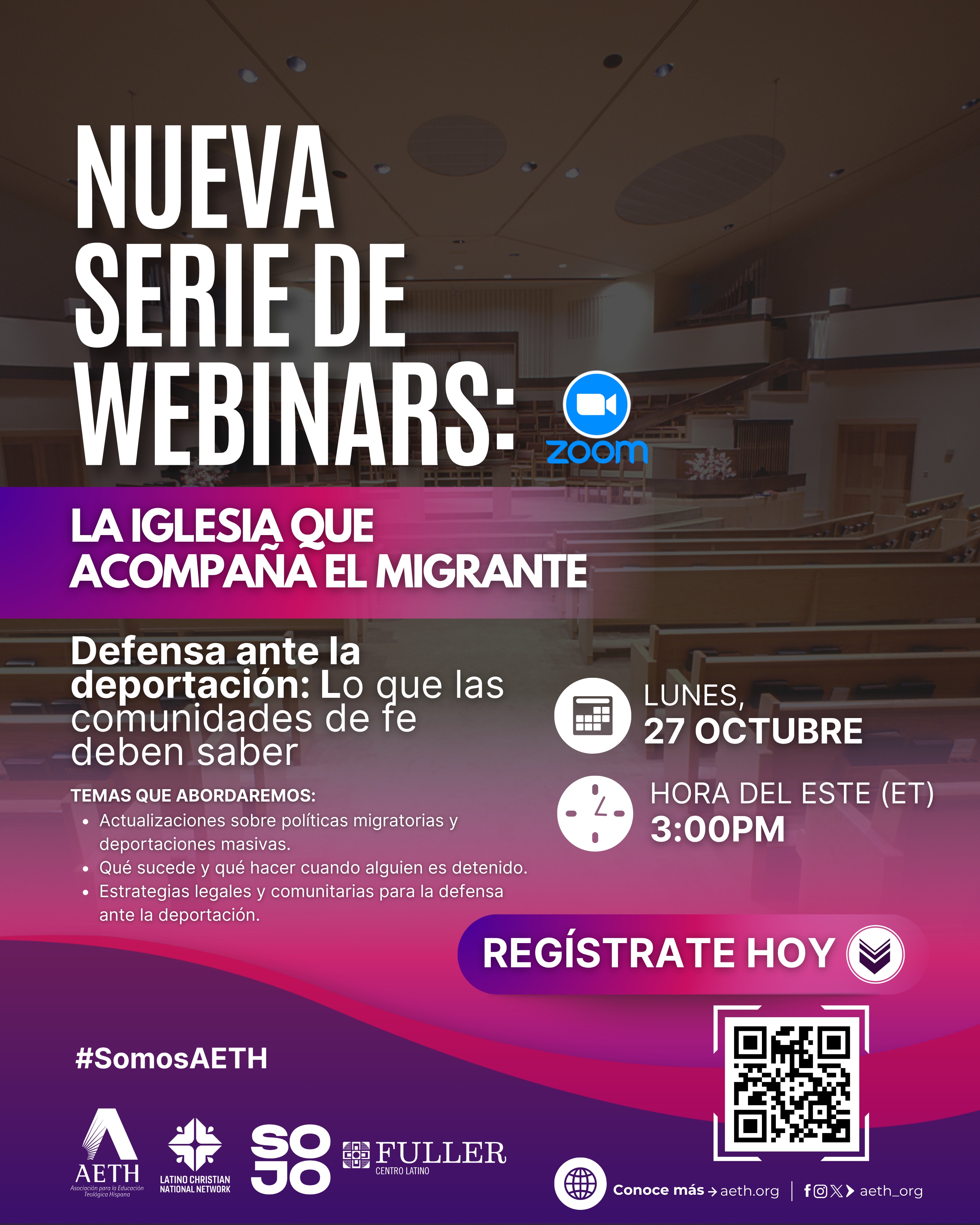 "La Iglesia Que Acompaña al Migrante" (The Church that Accompanies the Migrant) is a webinar series in partnership with AETH (Asociacion para la Educacion Teologica Hispana), Latino Christian National Network, Fuller Centro Latino and Sojourners SojoAction to help educate and walk with the local church and faith leaders on the topic of Immigration